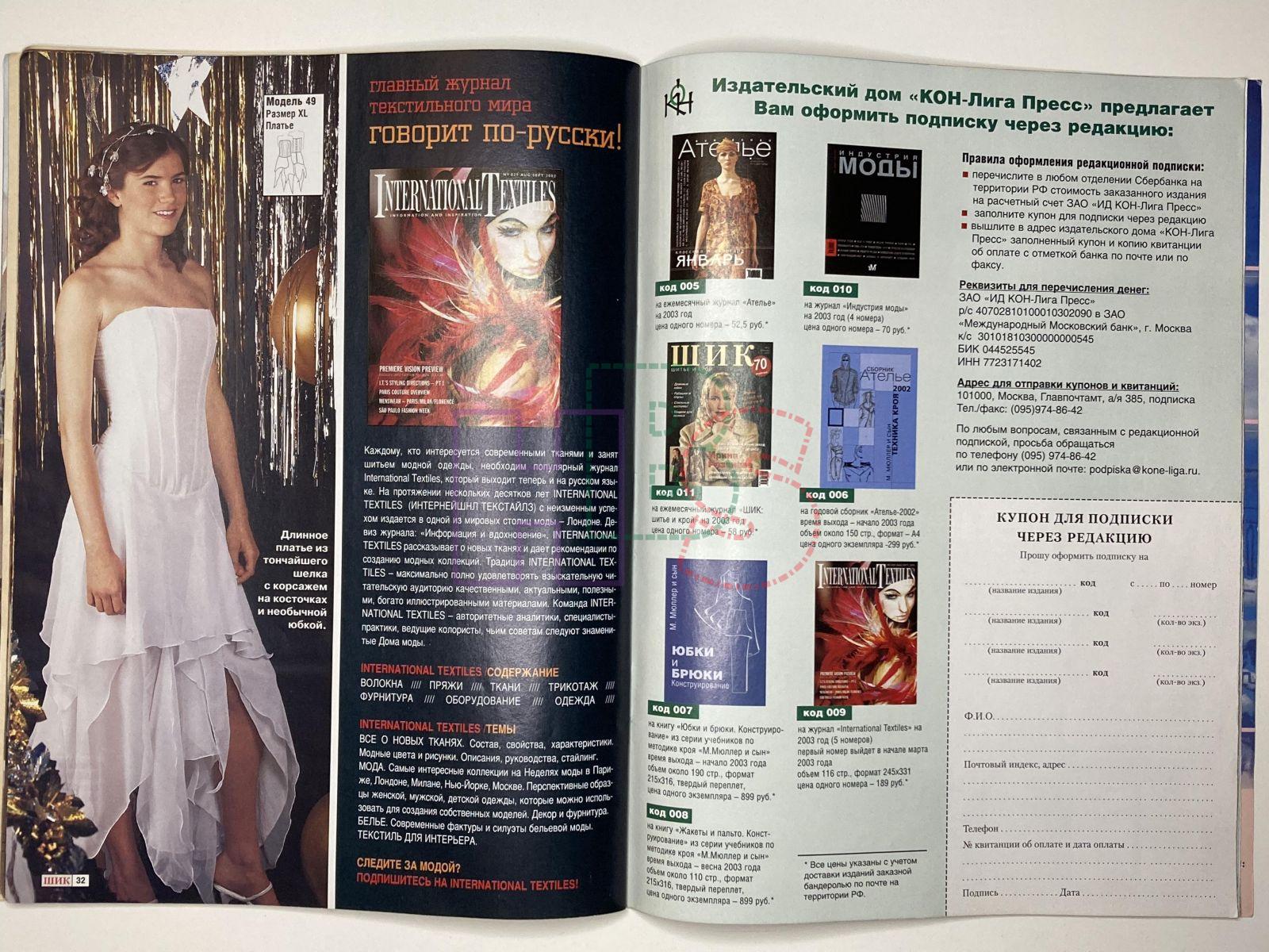 Коллекционный журнал - ШиК: Шитье и крой 4/2003
