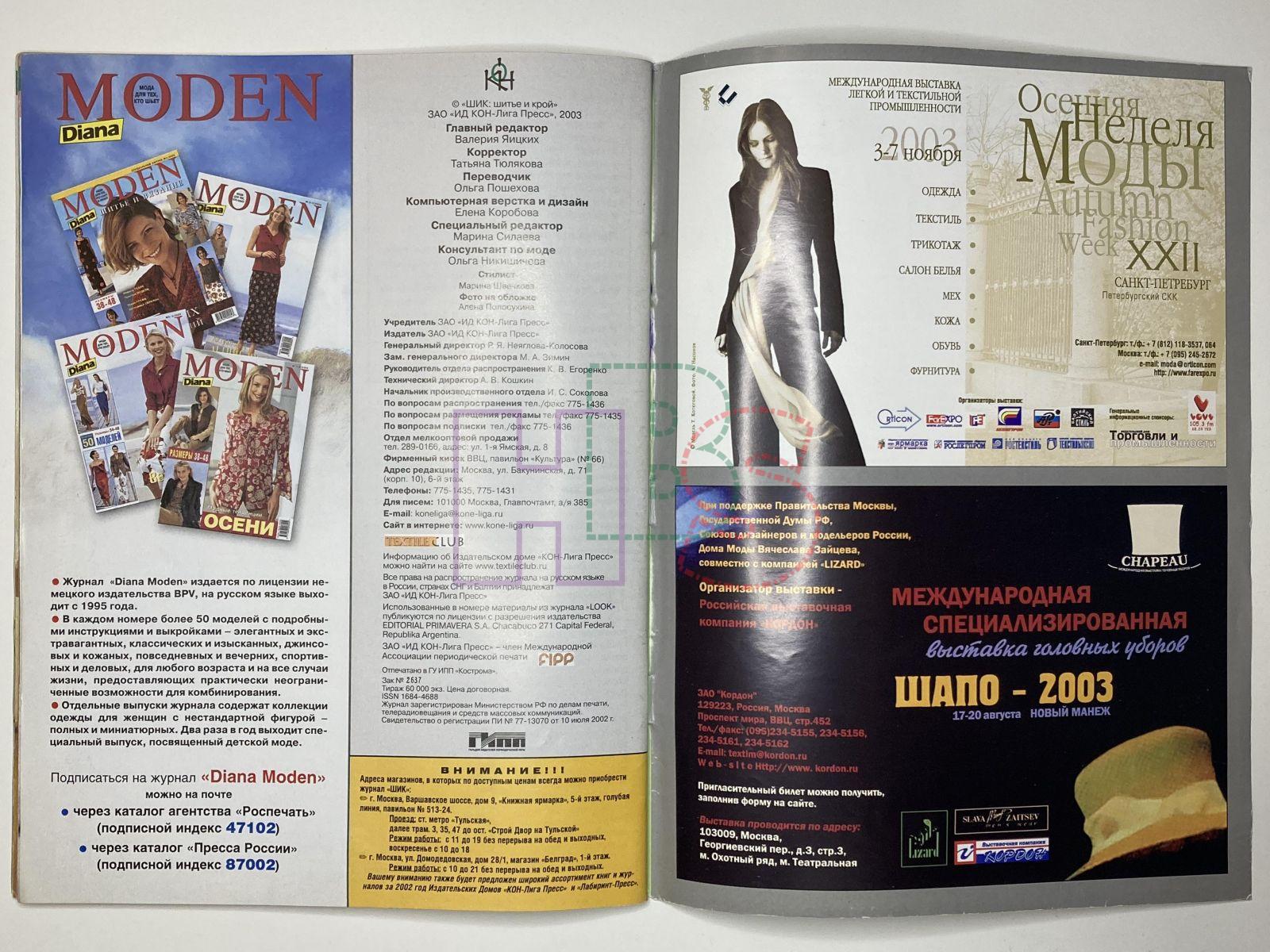 Коллекционный журнал - ШиК: Шитье и крой 9/2003