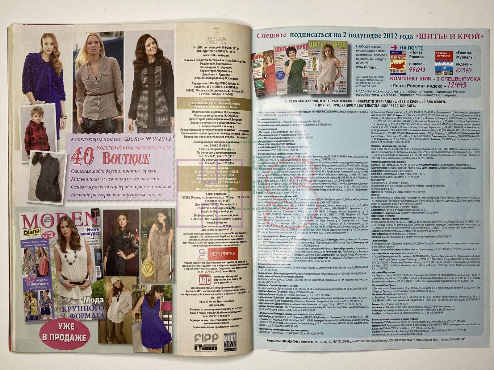 Коллекционный журнал - ШиК: Шитье и крой 8/2012 Boutique