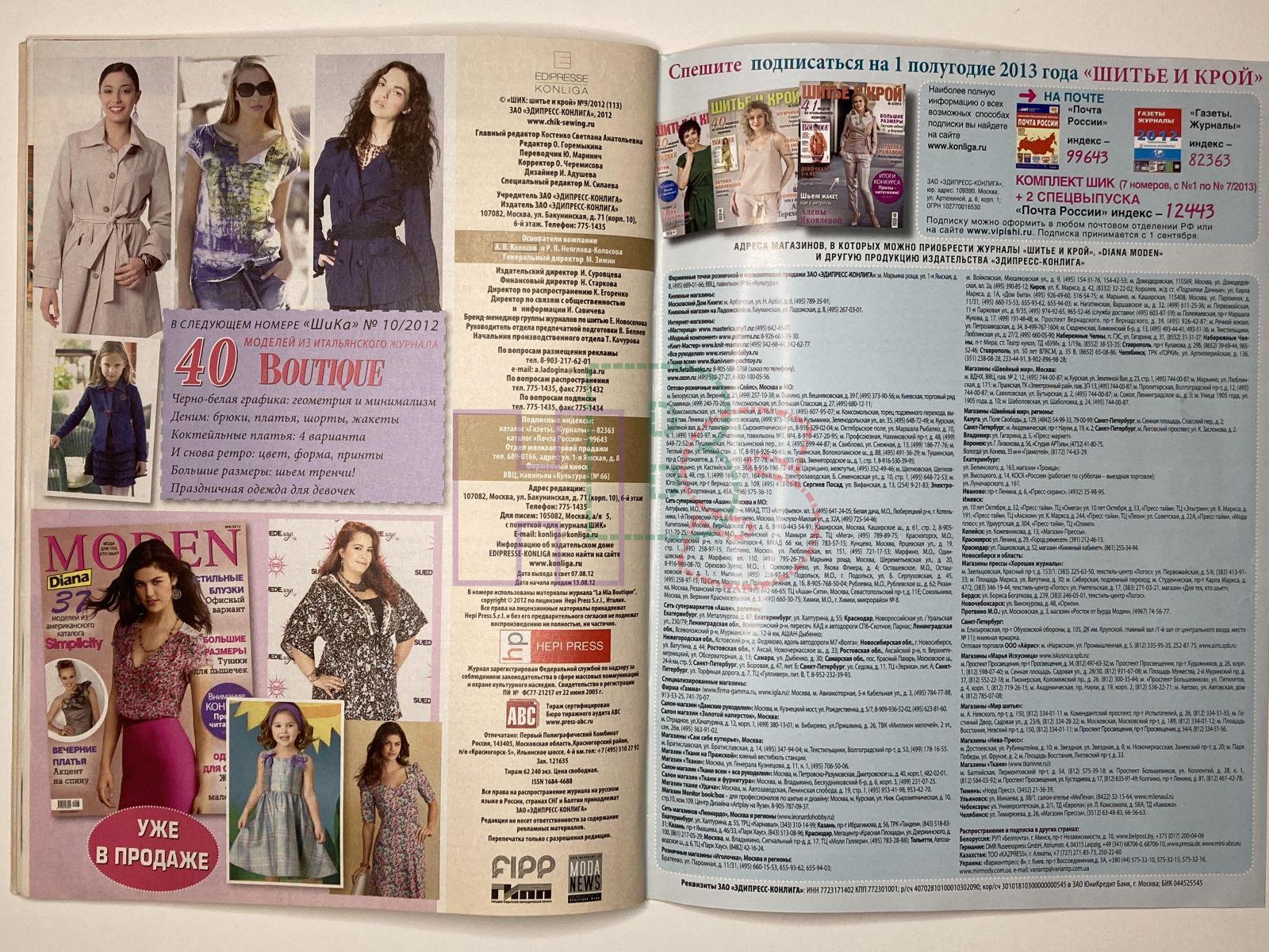 Коллекционный журнал - ШиК: Шитье и крой 9/2012 Boutique
