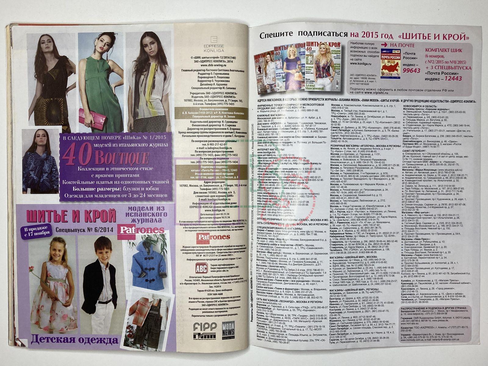 Коллекционный журнал - ШиК: Шитье и крой 12/2014 Patrones