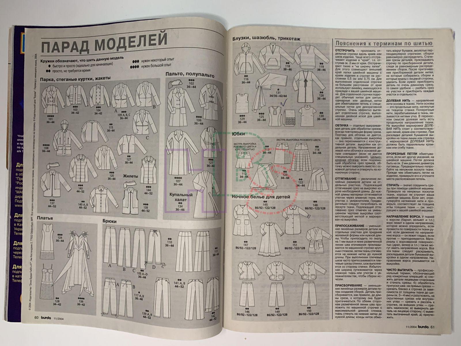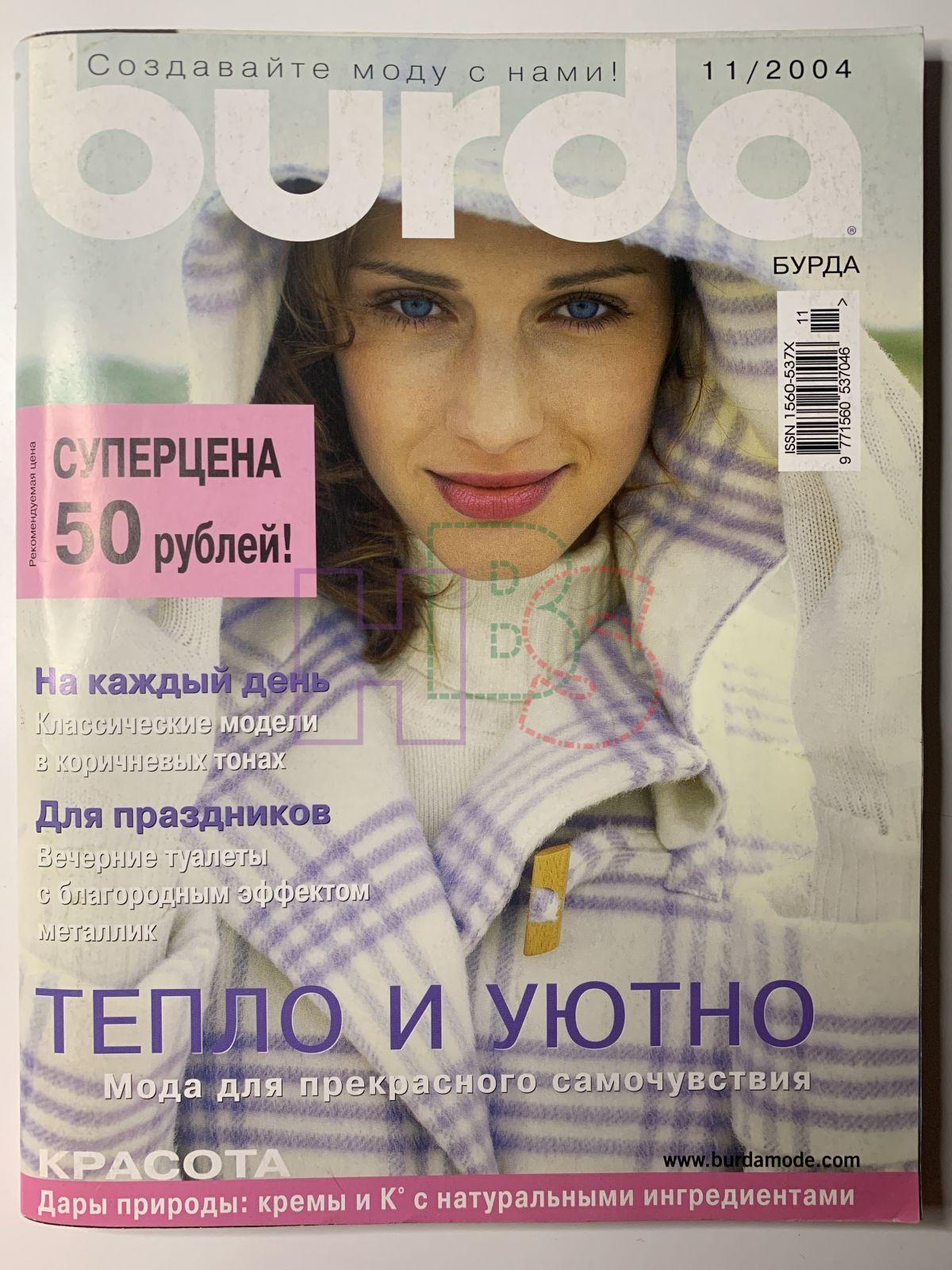Продажа журнала Burda 11/2004 за 750 руб. на русском языке с выкройками Доставка по Москве, России и Беларусь.