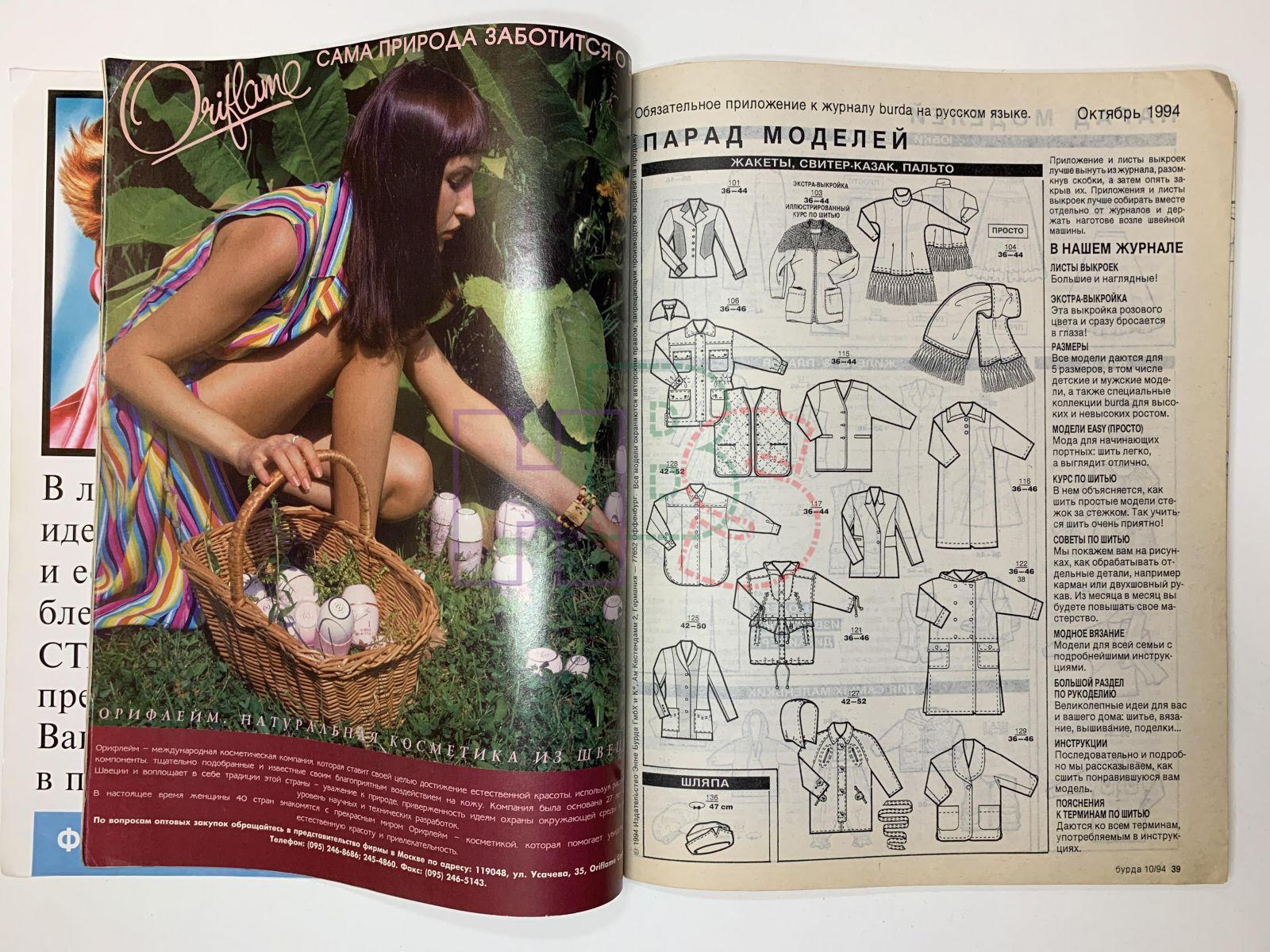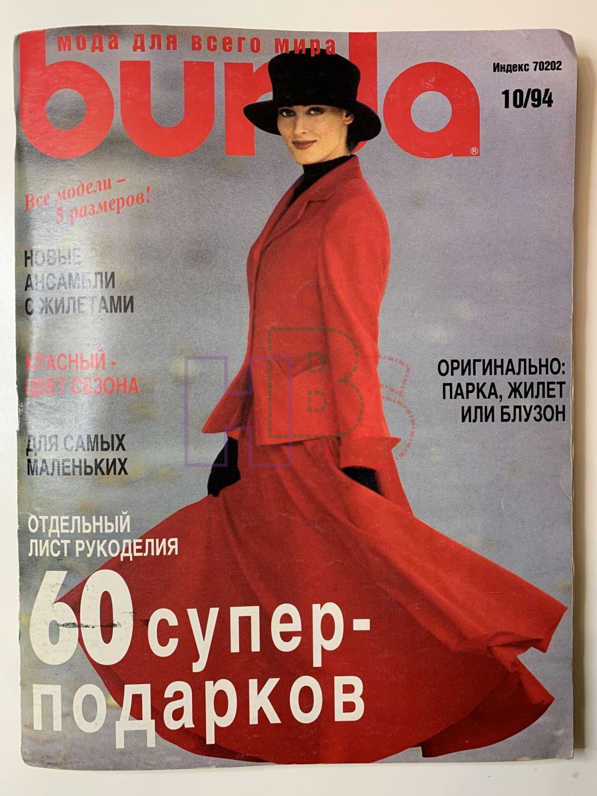 Продажа журнала Burda 10/1994 за 800 руб. на русском языке с выкройками Доставка по Москве, России и Беларусь.