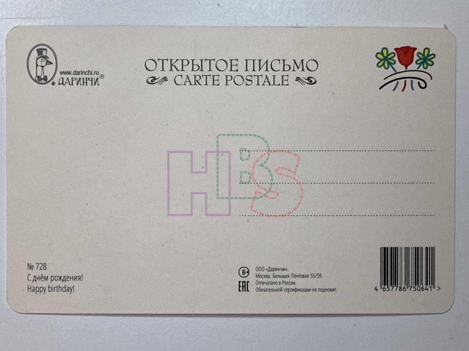 Продажа открытки С днем рождения! №728 за 50 руб. Доставка по Москве, России и Беларусь.