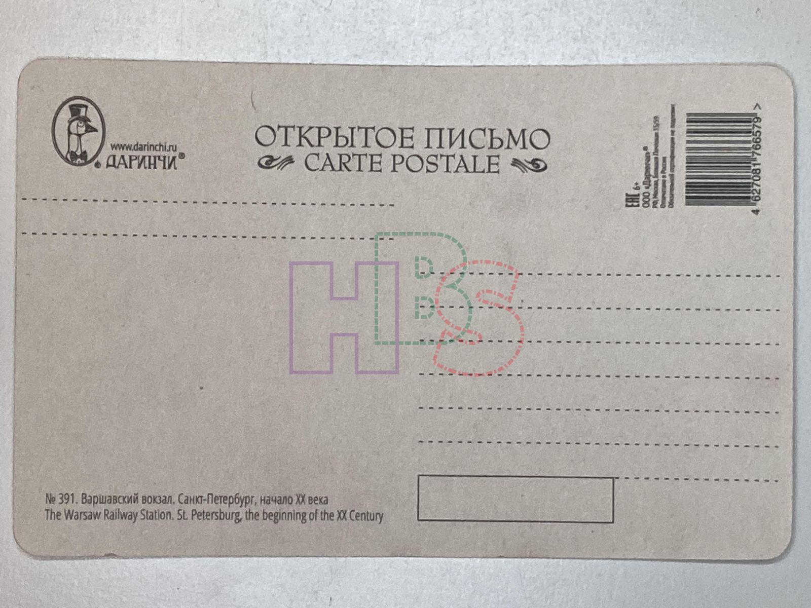 Продажа открытки Варшавский вокзал. Санкт-Петербург, начало ХХ века. №391 за 50 руб. Доставка по Москве, России и Беларусь.