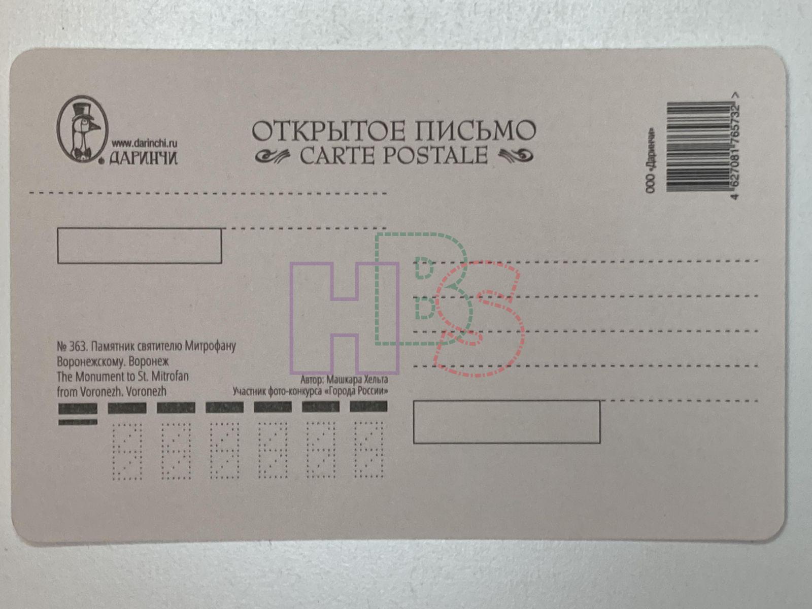 Продажа открытки Памятник святителю Митрофану Воронескому. Воронеж №363 за 50 руб. Доставка по Москве, России и Беларусь.