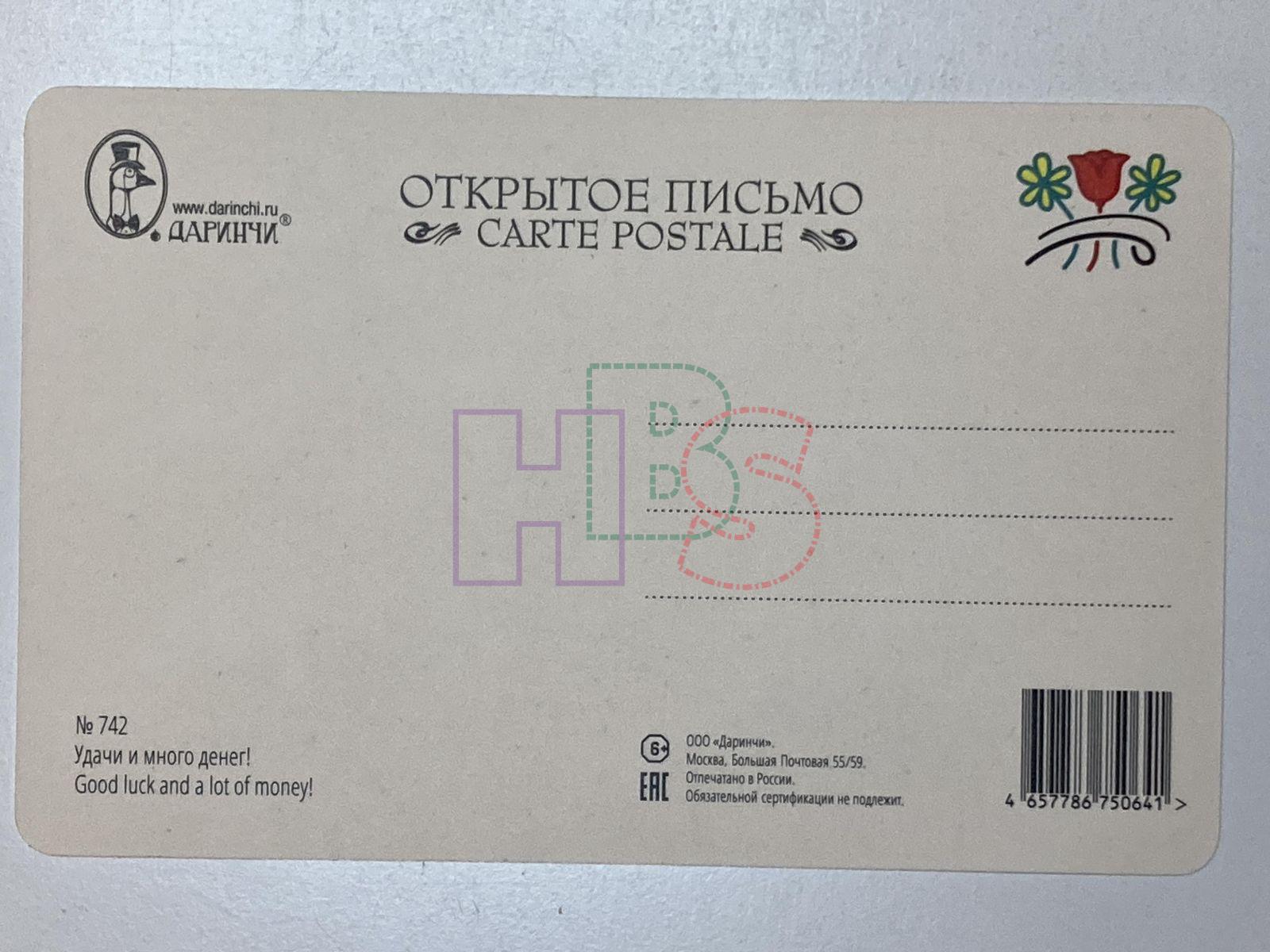 Продажа открытки Удачи и много денег! №742 за 50 руб. Доставка по Москве, России и Беларусь.