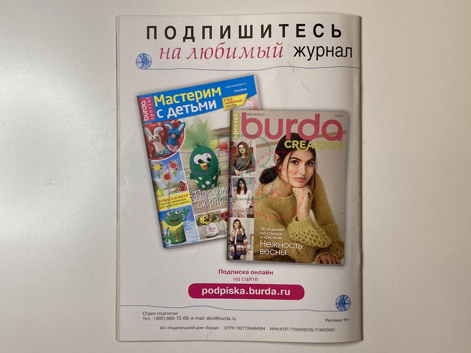 Продажа журнала Burda Creazon 2/2019 за 300 руб. Доставка по Москве, России и Беларусь.