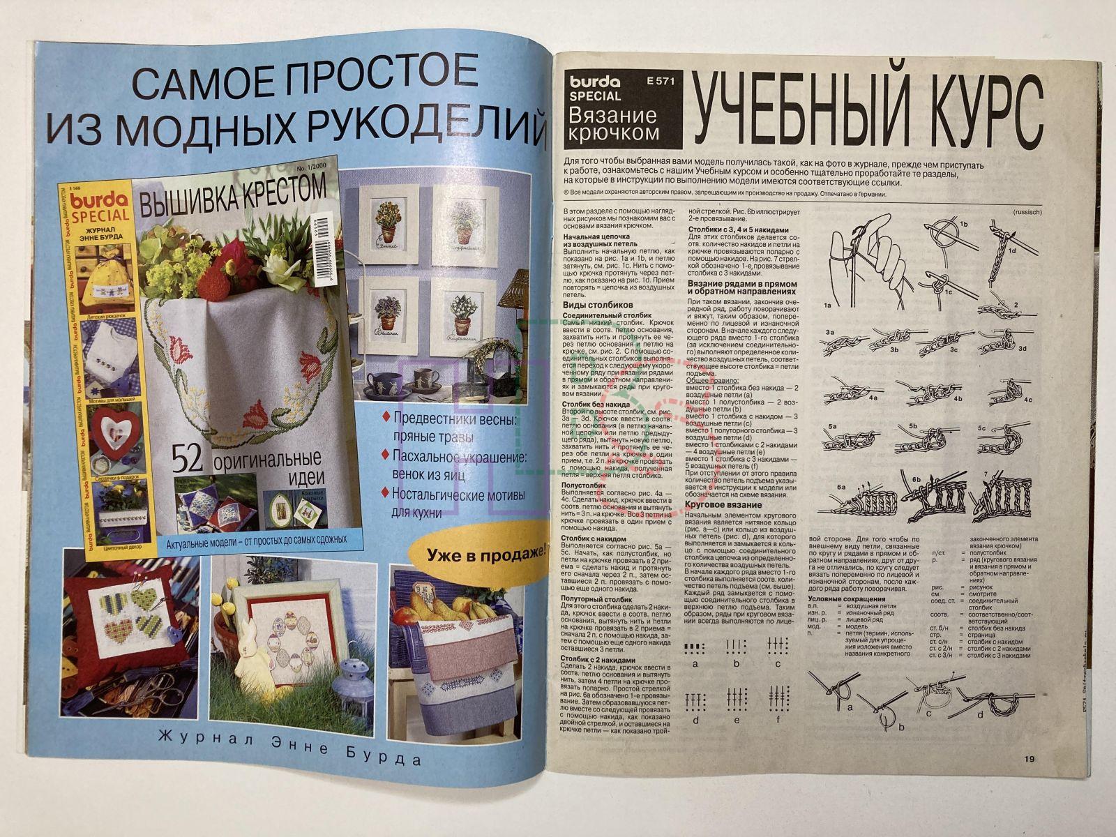 Продажа журнала Burda Вязание крючком 1/2000 за 3000 руб. Доставка по Москве, России и Беларусь.